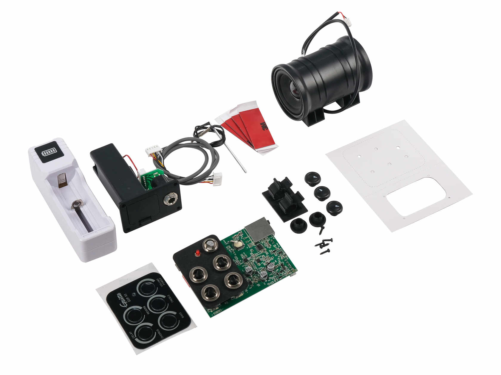 Динамик, прикрепленный к деке инструмента, создает эффекты реверберации, дилея и хоруса без подключения к усилителю.